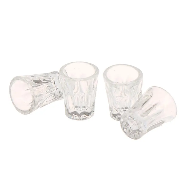 Includes: set of 4 clear cups measuring approximately 0.7 cm wide x 1.1 cm high