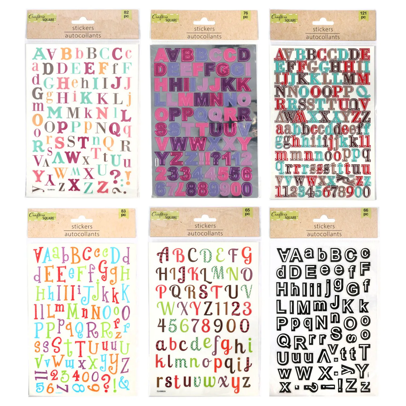 Use these stickers to personalize your DIY projects, in scrap books, handmade cards, gift tags, gift boxes, gift wrapping paper, and so much more! These alphabet stickers come assorted in the six styles shown bringing a variety of characteristics and colors. They're perfect for all kinds of crafting and DIY projects.