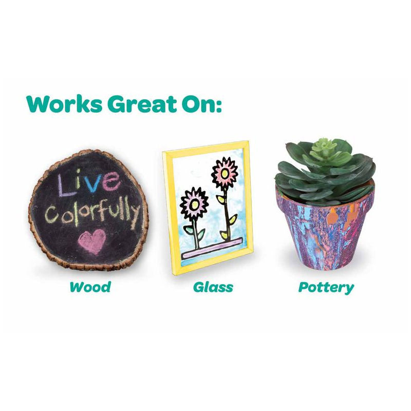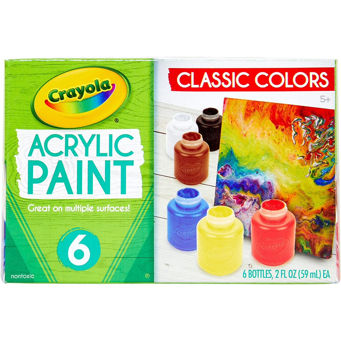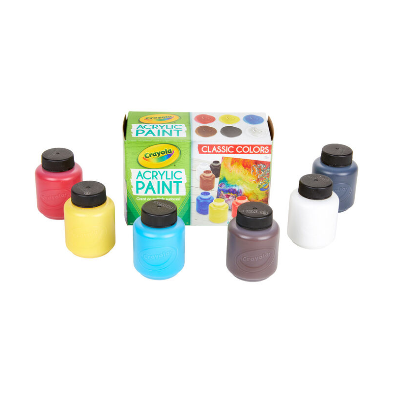 Crayola Acrylic Paint are water-resistant and permanent when dry. Thick and hearty, this paint makes possible a wide variety of techniques on surfaces such as canvas, wood, metal, fabrics and ceramics.