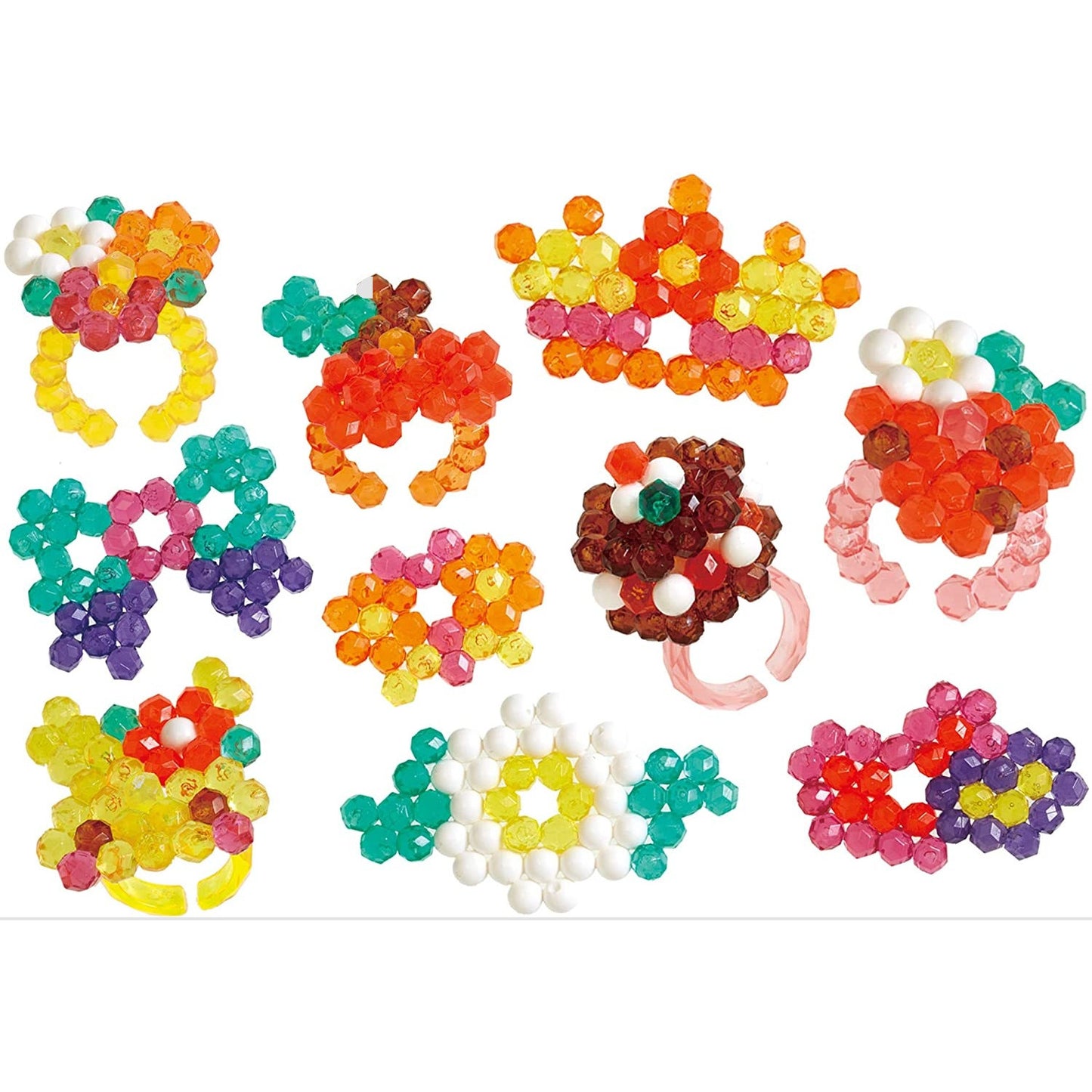 Includes: Over 400 jewel and solid beads in 8 colors, 6 rings, 3 template sheets and instructions