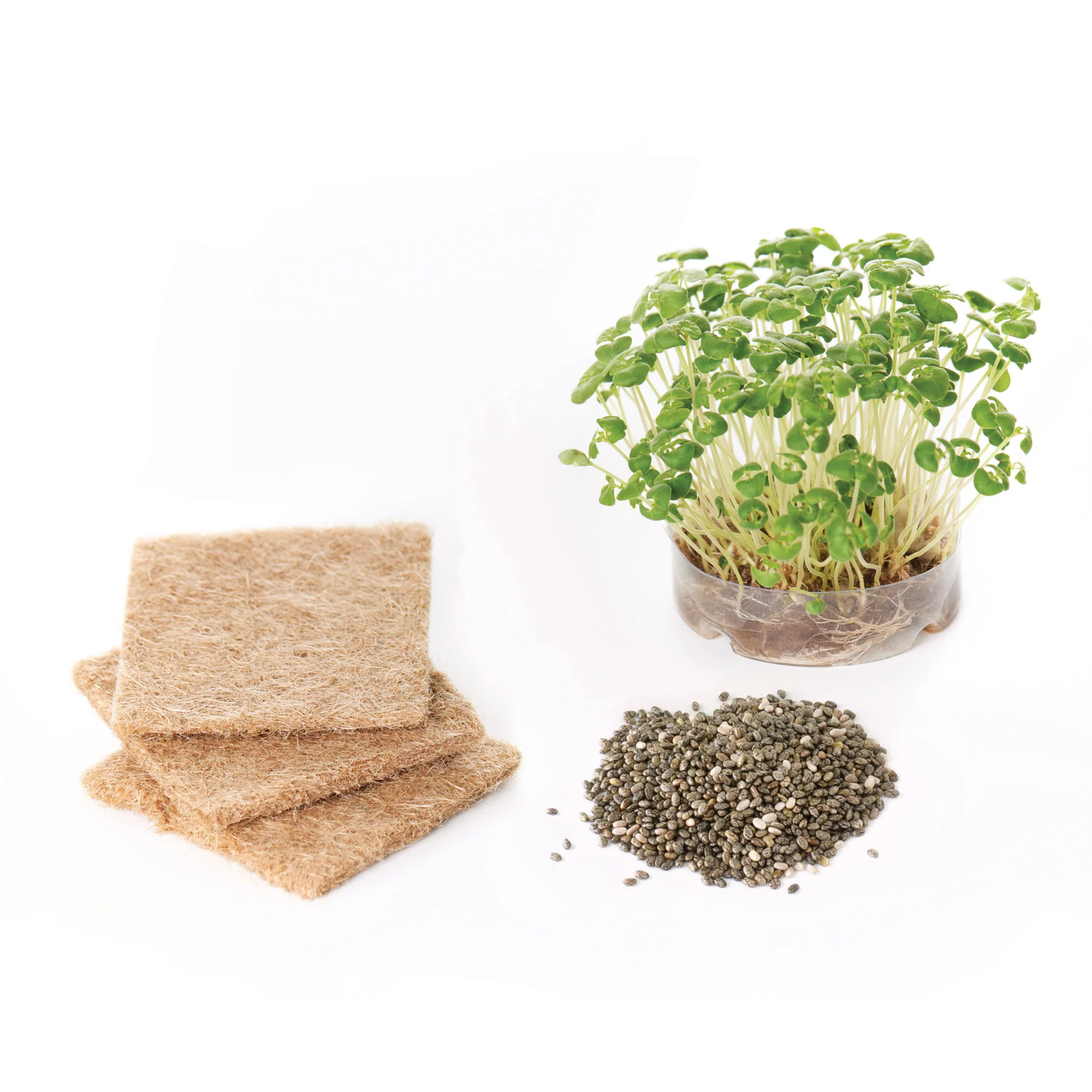 Includes: 27 wooden cut-outs, bag of chia seeds, 3 jute soil-free grow mats, 3 plastic grow trays, 1 water dropper, 1 strip of double-sided adhesive dots, 5 miniature animal figures (narwhale, unicorn, frog, ladybug and sloth), 6 non-toxic paints (rose, light blue, cadmium yellow, light violet, light yellow and turquoise green), broad tip paintbrush, craft glue tube, glitter gel tube, assorted stickers, cardstock cut-outs, craft string and instructions