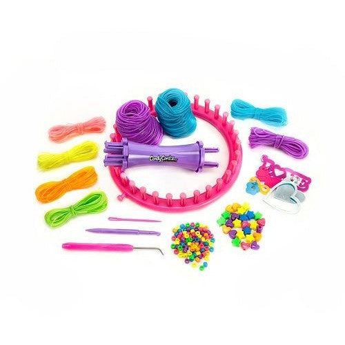 Includes: Round Plastic Knitting Loom, Plastic Tapestry Needle, Knitting Loom Pick, 5 Skeins Tubular Lanyard Lace, Plastic Charms, Plastic Shaped Beads, Plastic E-Beads, & Easy to Follow Instructions