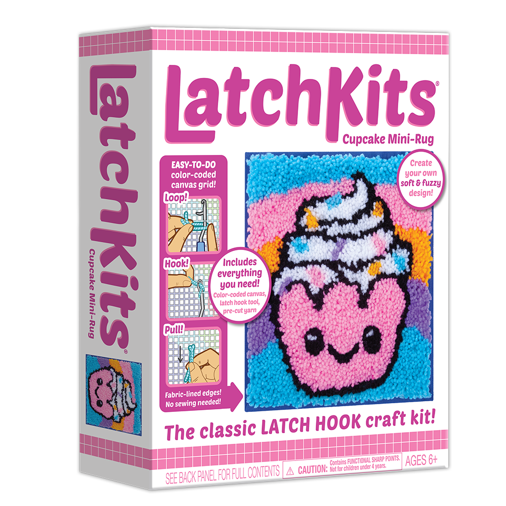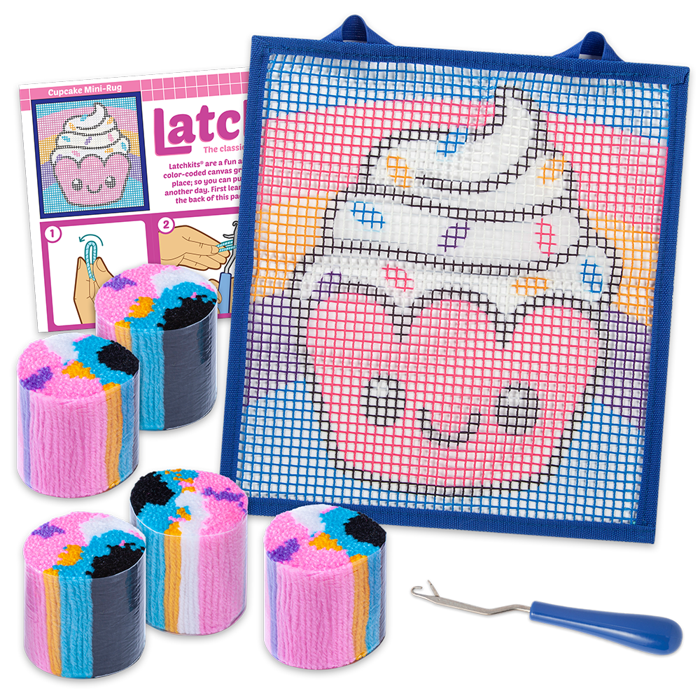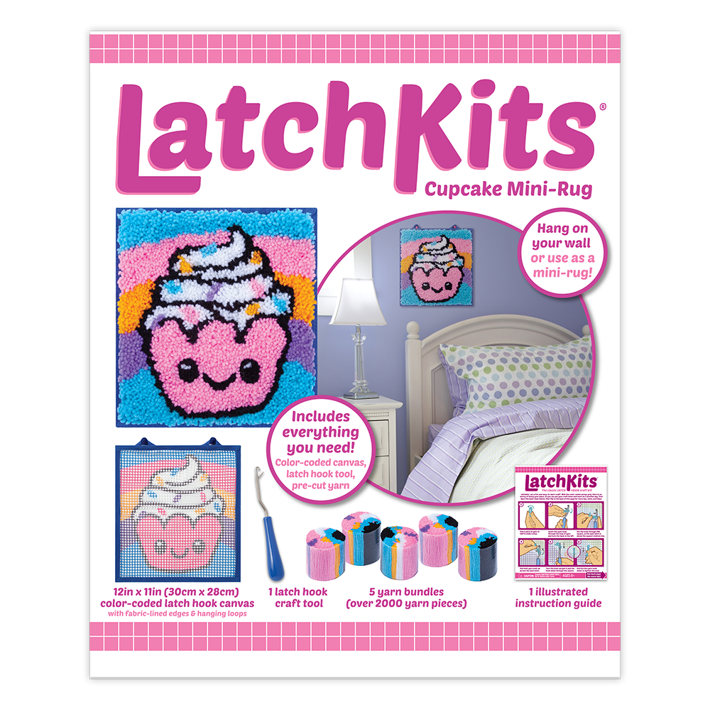 LatchKits are a fun and easy to learn craft-just loop, hook, and pull! The sturdy canvas features fabric-lined edges and hanging loops to create your very own soft and fuzzy design that’s ready to hang on your wall or use as a mini rug.