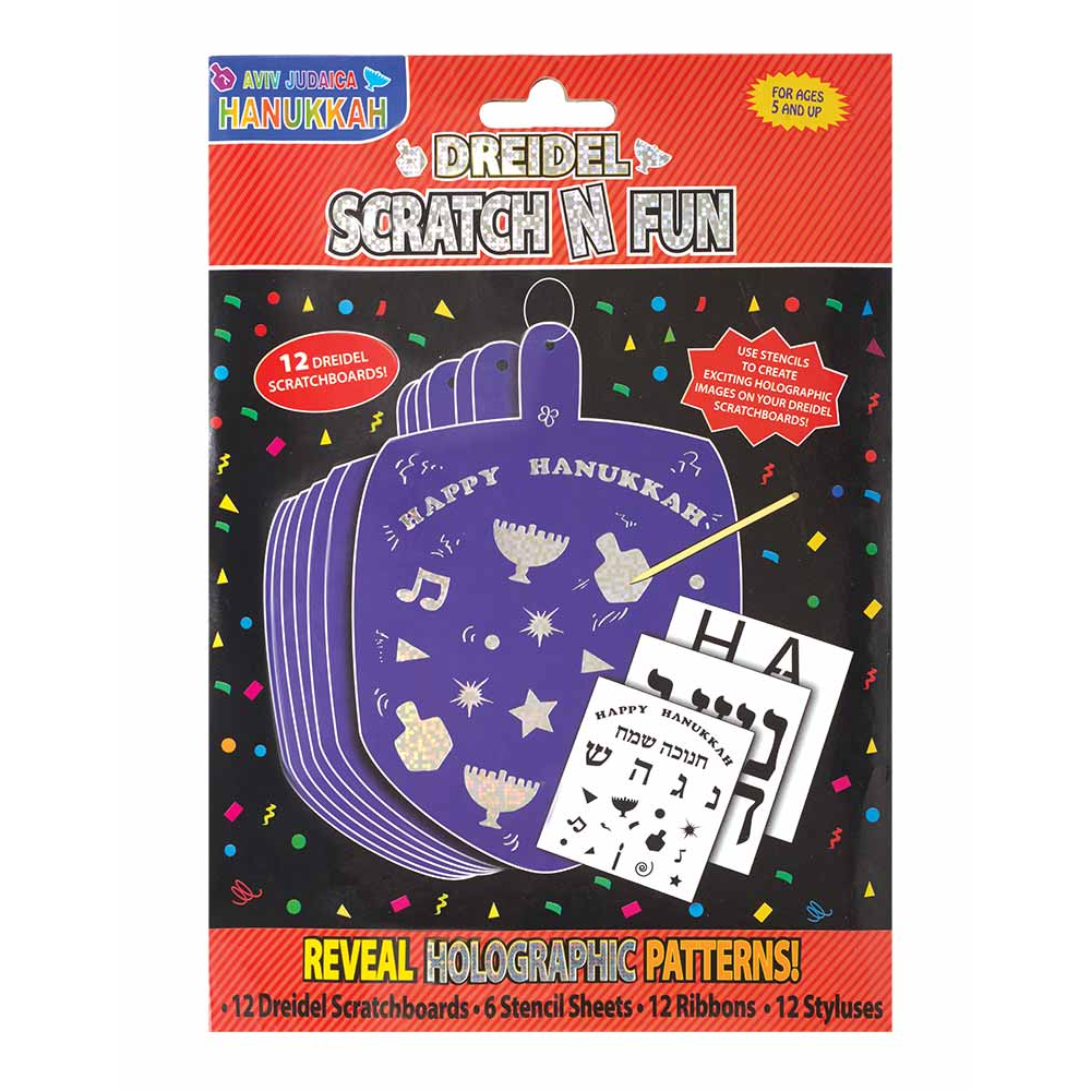 Includes: 12 dreidel scratchboards, 6 stencil sheets, 12 ribbons and 12 styluses