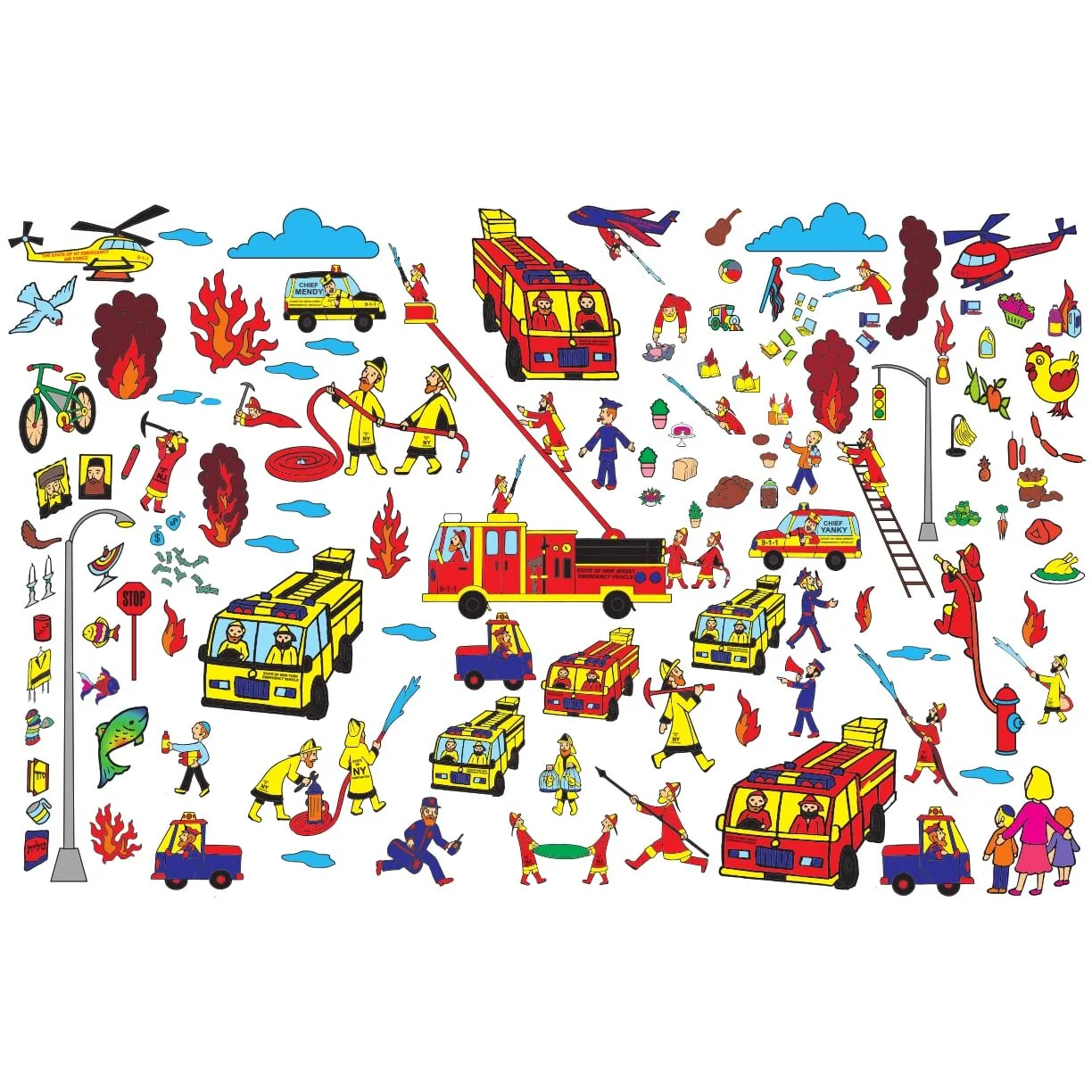 Set up your own fire scene by sticking the stickers onto the background board.