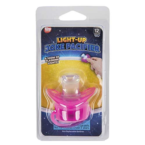 These pacifiers are designed to light up your gatherings with flashing, multicolored lights that'll leave everyone in stitches. Twist to trigger an illuminating series of flashing lights.