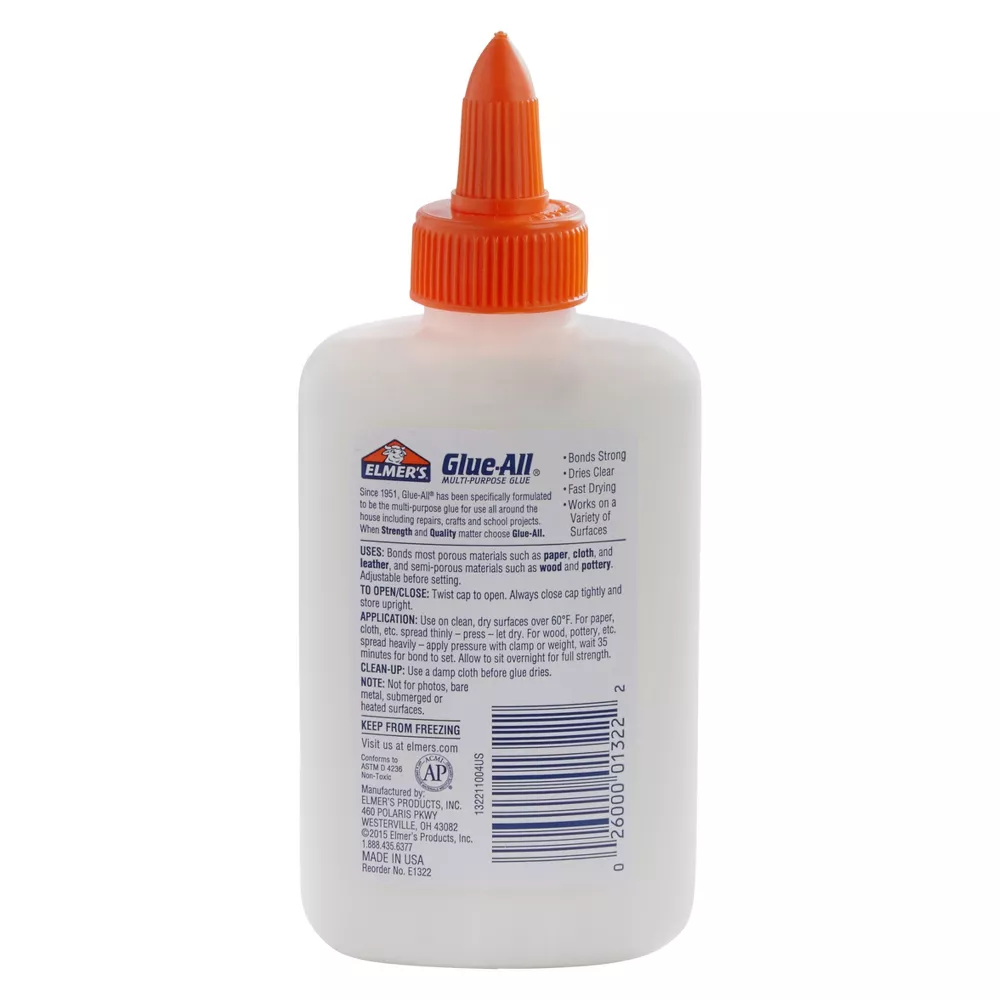 Permanently attach items to paper, fabric, wood, ceramics, leather, and more. Ideal for household jobs, crafts, and school projects, Elmer's Glue-All bonds strongly and dries quickly.