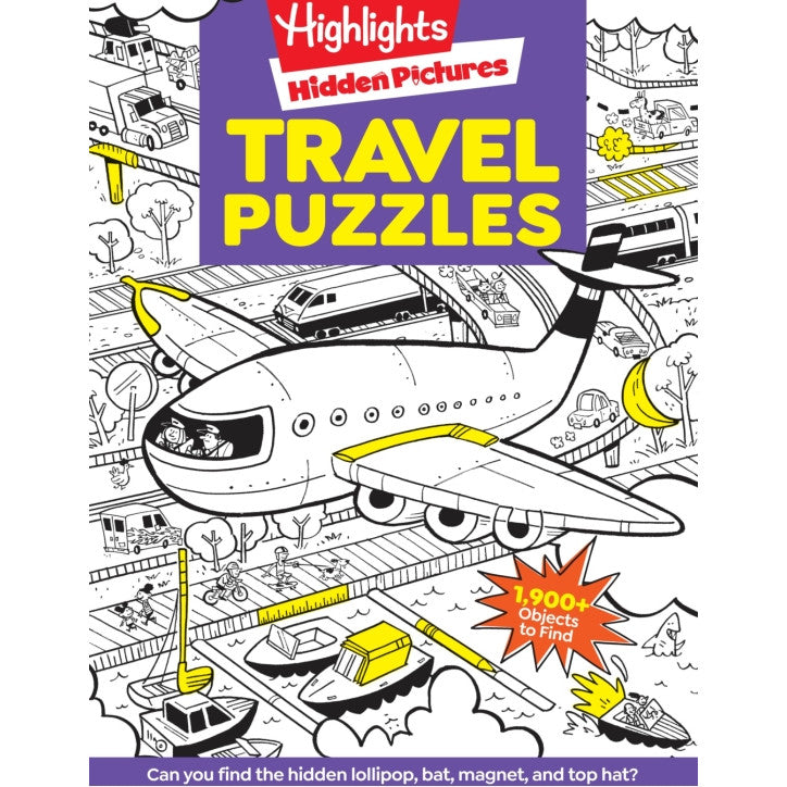 This book is packed with over 100 travel themed puzzles drawn in the classic Highlights black and white style. From illustrations of family vacations to class trips to adventures on water, land, in the air, and in space, there are puzzles for every interest. With more than 1,900 objects to find, this book is sure to satisfy a sense of adventure in every child.