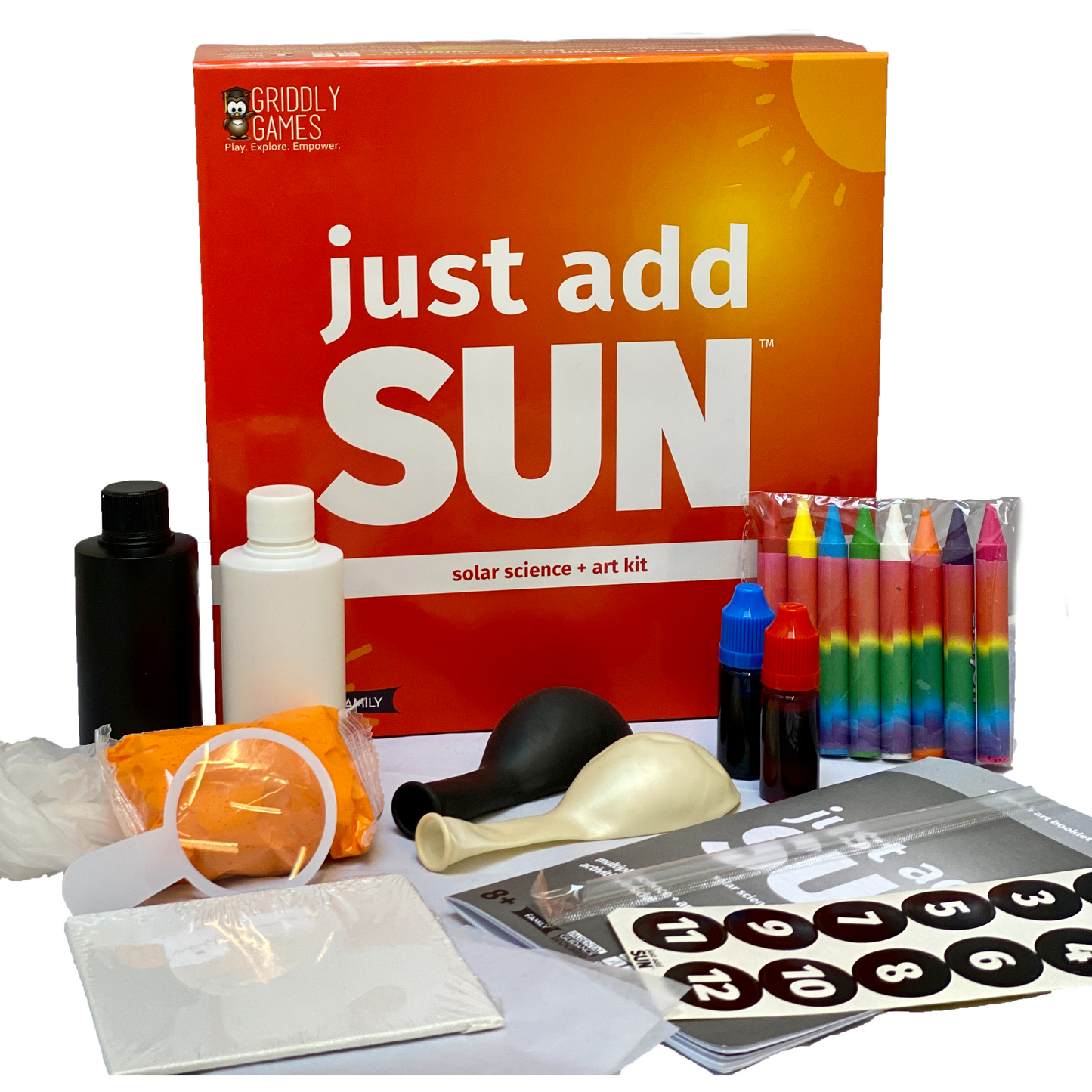 Includes: everything you need for at-home science and art experiments, all you need is sunlight