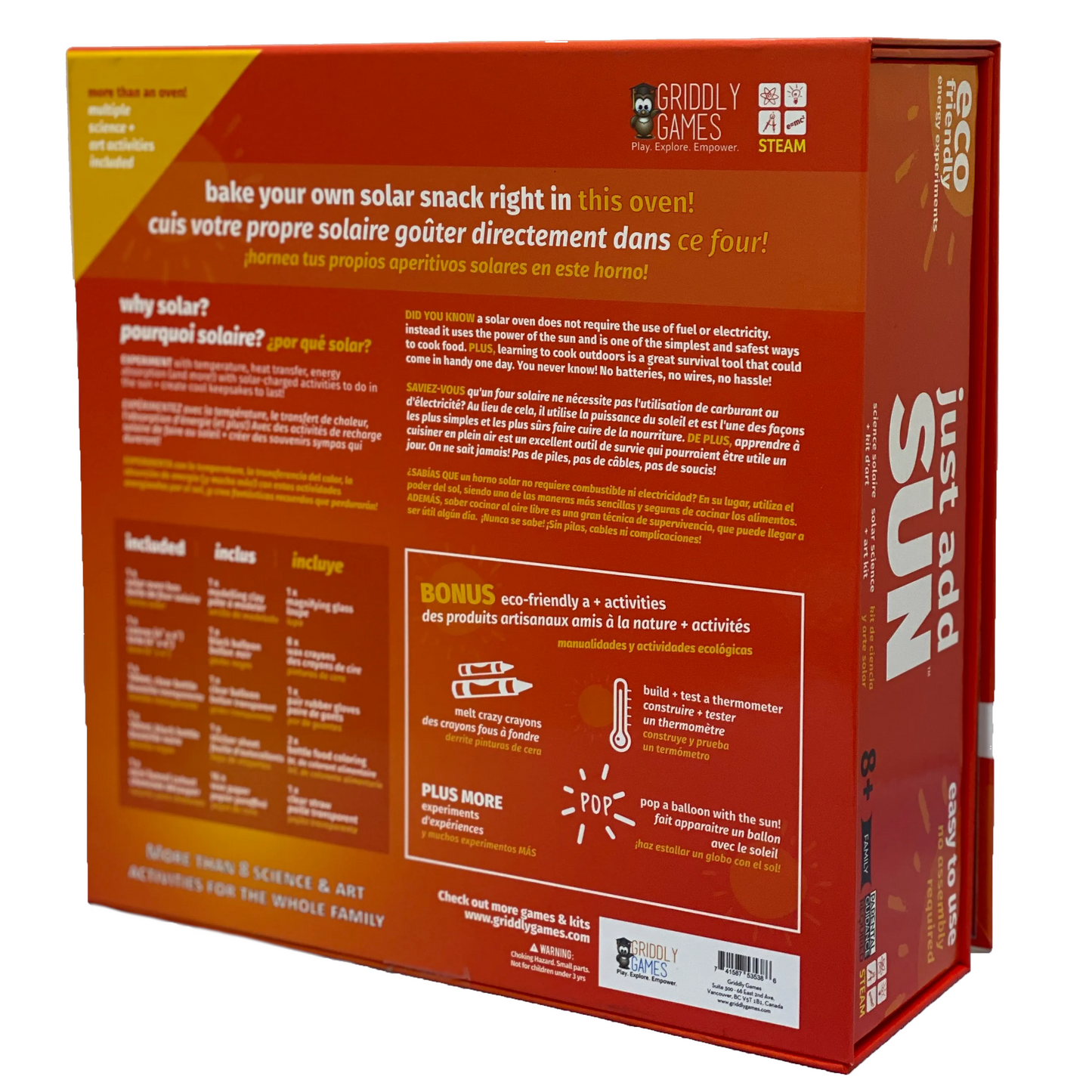 Use the sun‘s energy to heat up a tasty treat in this STEAM solar oven kit! More than 8 science and art activities including Balloon Blow, Wax Paper Sun Catcher and so much more!