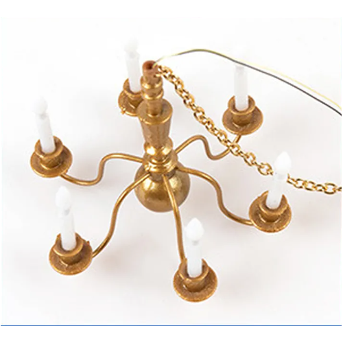 Includes: one golden colored chandelier measuring approximately 3.54" x 1.77" x 2.95"