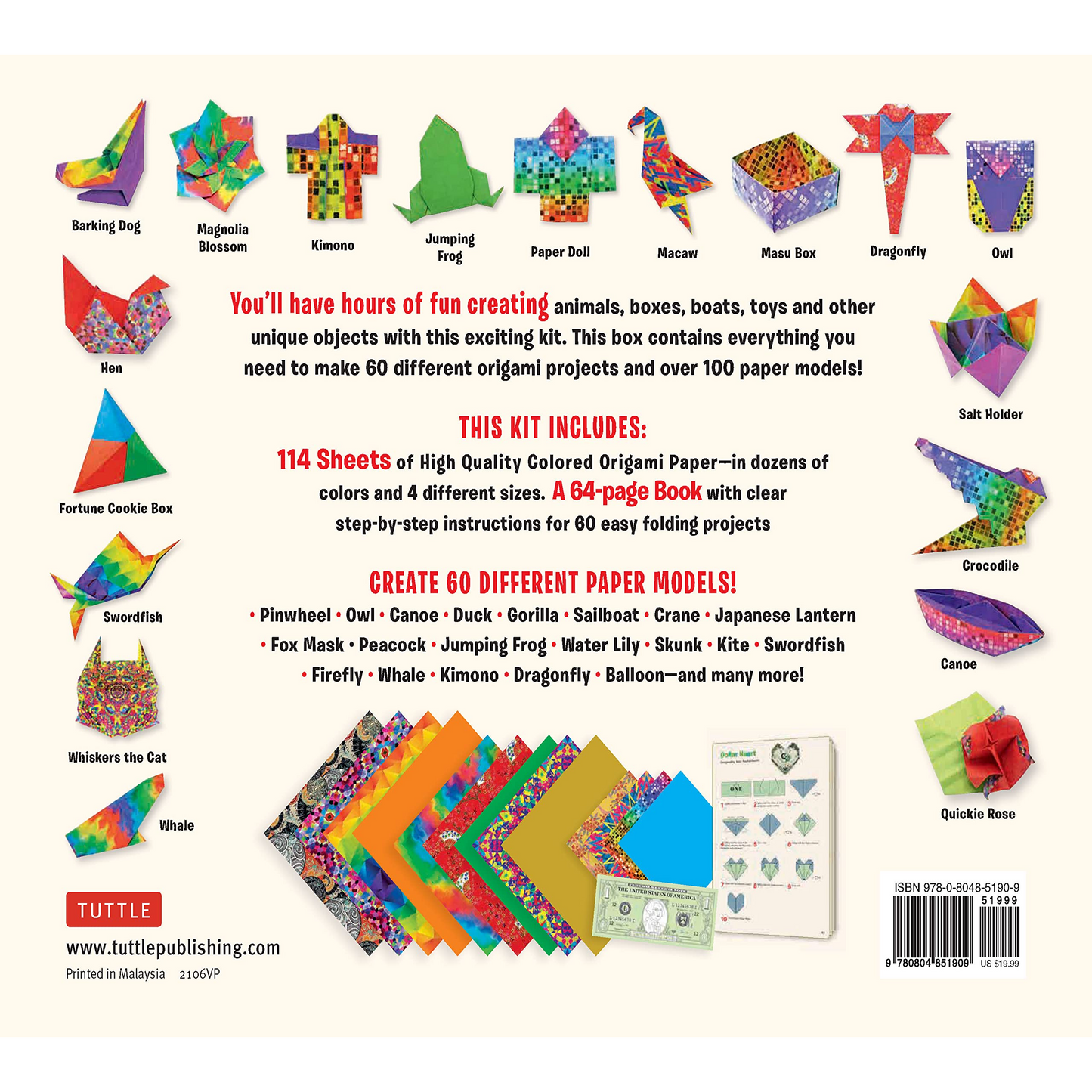 Create over 60 colorful origami animals, boxes, boats, toys and more with this origami kit!
