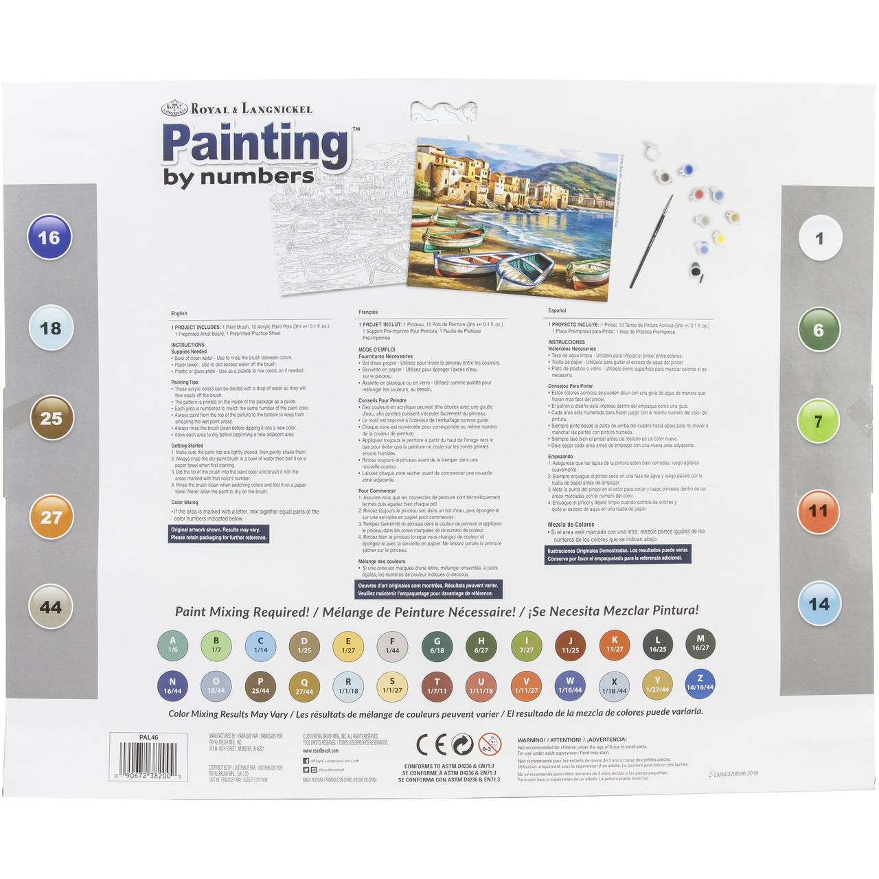 Includes: pre-printed 12.75" x 15.75" artist board, practice sheet, acrylic paints, paint brush and instructions