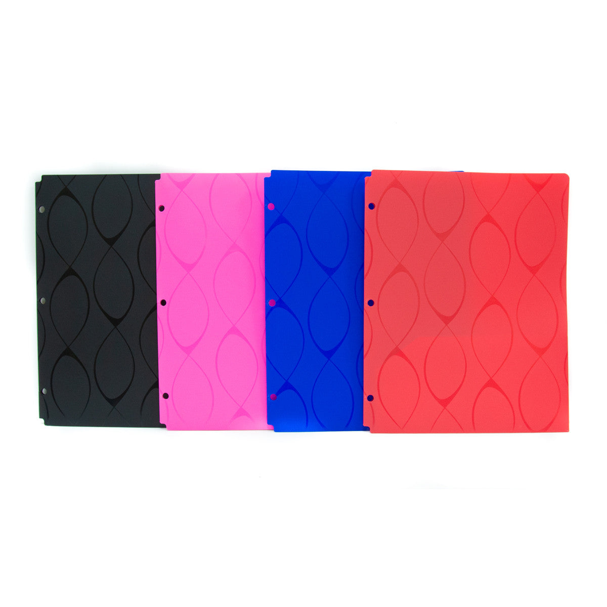 Includes: one 3 hole punched poly 2 pocket folder in black, blue, red or pink color