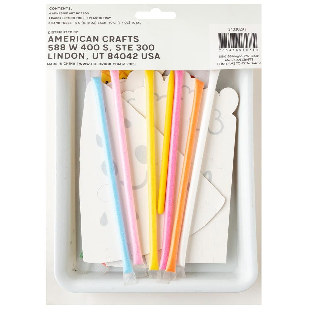 Includes: 4 adhesive art boards, paper lifting tool, plastic tray, and 8 sand tubes
