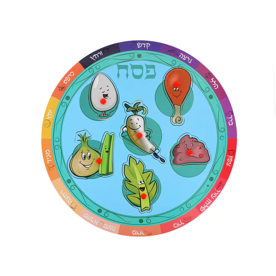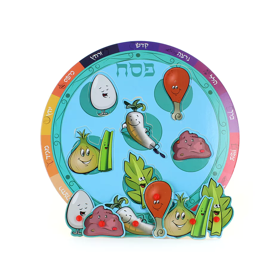 This Seder plate wood puzzle, makes a great gift and provides a fun and educational activity for young children during Pesach. Kids learn where each of the foods are placed, their names, and so much more!