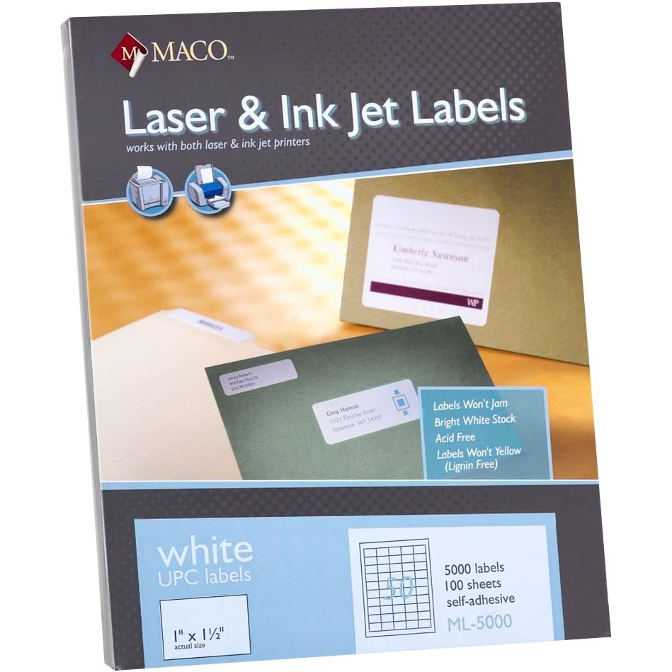 Laser/Inkjet 1" x 1 1/2"" White UPC Labels - 5000/Box