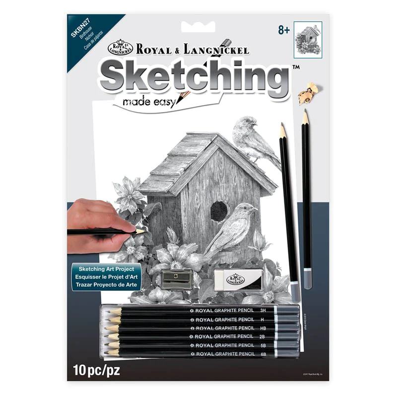 Includes: a very lightly pre-printed 11-3/8" x 8-3/4" board, six graphite pencils (3H, H, HB, 2B, 5B and 6B), eraser, sharpener and basic sketching instructions