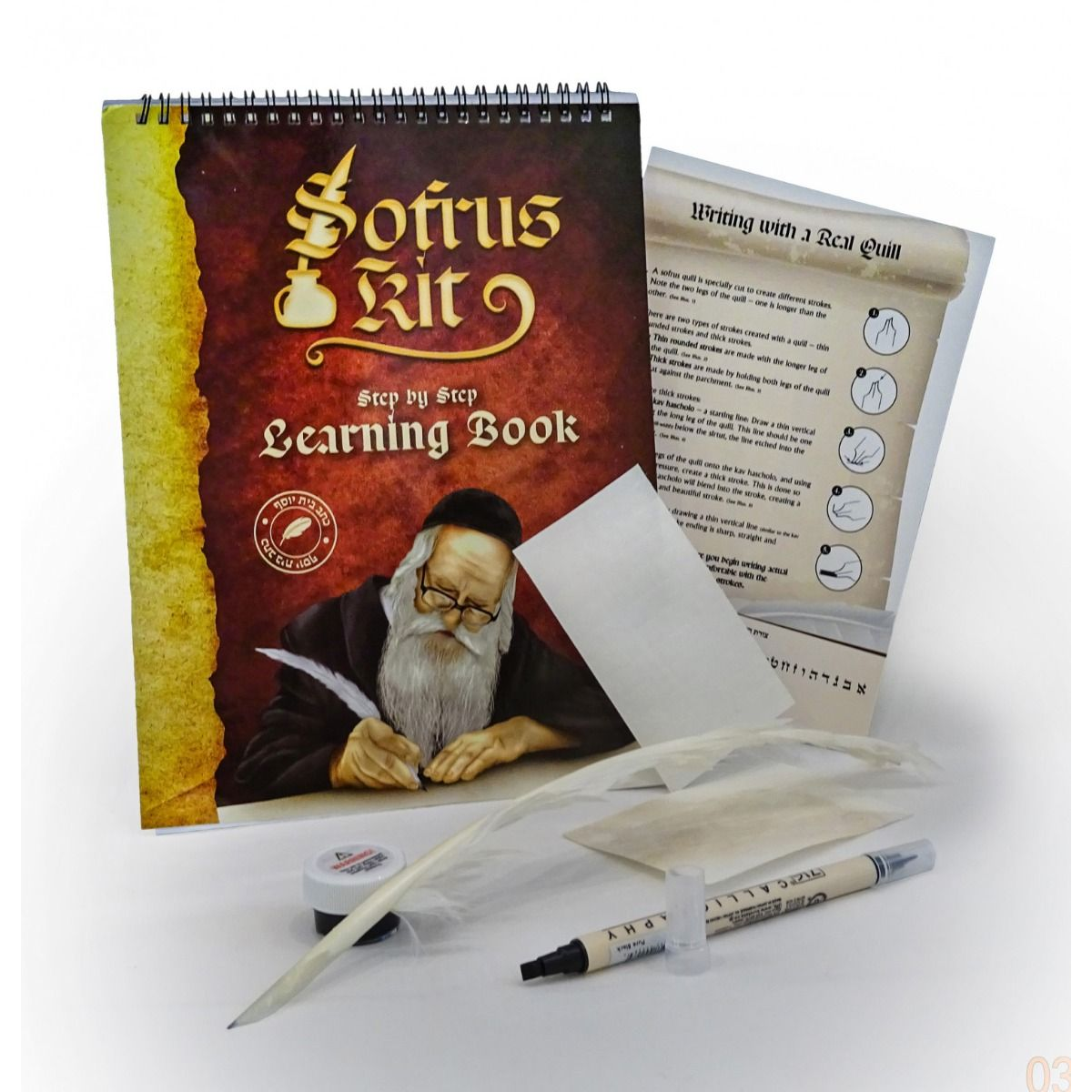 Includes: quill point marker, real feather quill, kosher sofris ink, authentic parchment, sampler instructions and step by step book with instructions in English