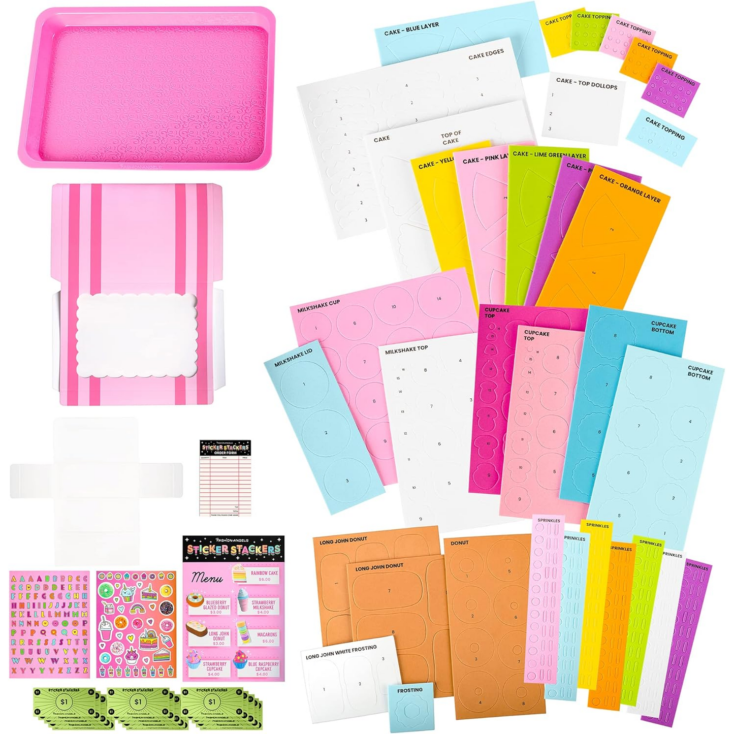 Includes: 46 foam sticker sheets, serving tray, 30 sheet order form pad, menu, bakery box, macaron box, 15 sheets of play money, 3 sticker sheets, collector sheet and easy to follow instructions