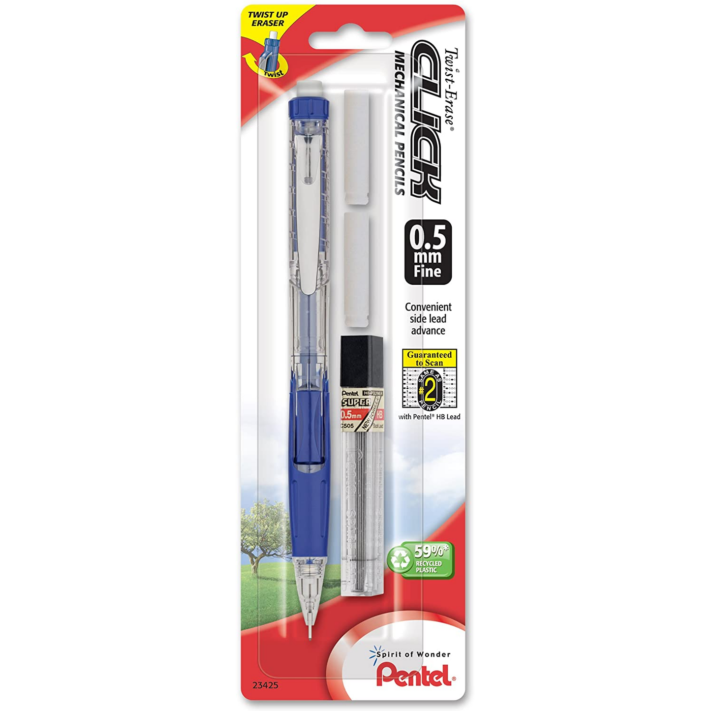 Twist Erase Click Clear Automatic Pencil with 2 Eraser Refills and Lead, 0.5 mm