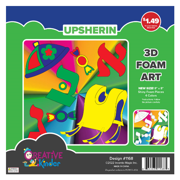 Includes: 8" x 8" board and shiny foam pieces in 4 colors